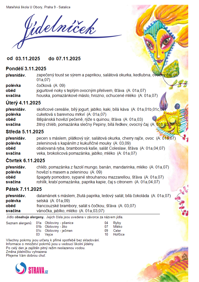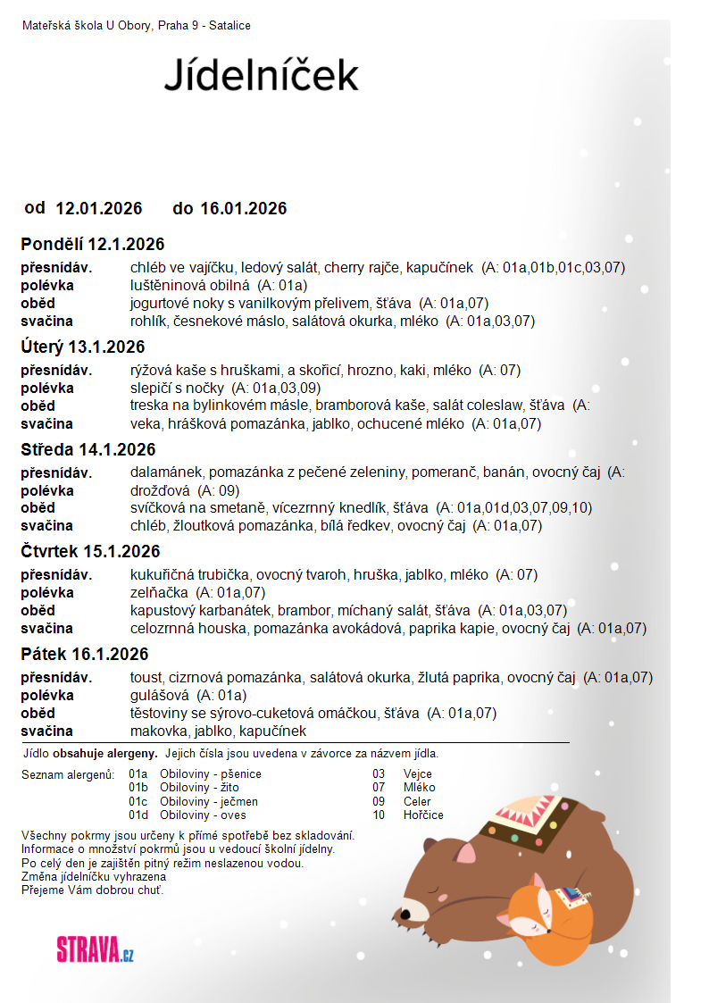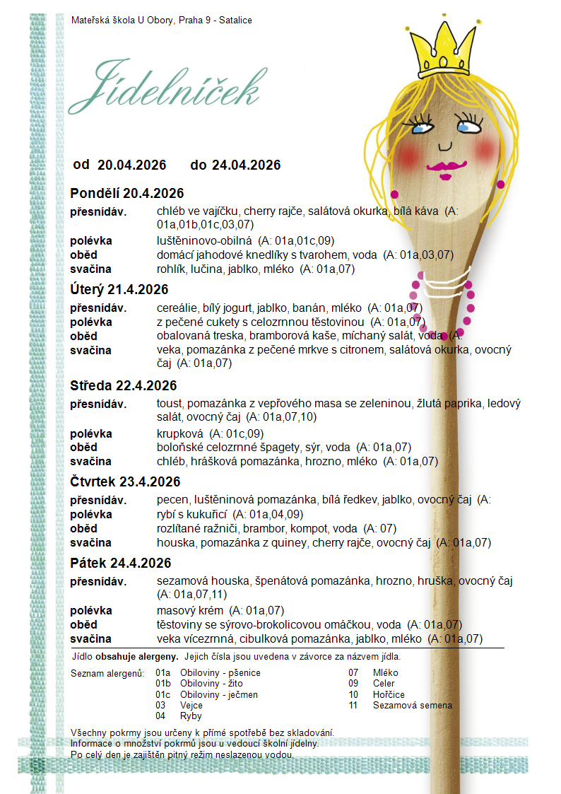 Pitný režim po celý den.  Změna jídelníčku vyhrazena.